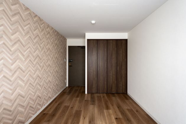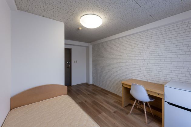 房間多為8.3疊的寬廣尺寸,而且還有附有抽屜的大型衣櫥,有足夠的深度,到天花板之間都可以充分利用。每個房間會因壁紙和地板不同的設計而展現不同風貌。自動密碼鎖則是考慮了安全性。想要一個人安靜的時候就可以待在房間裡。也有女性專用樓層。