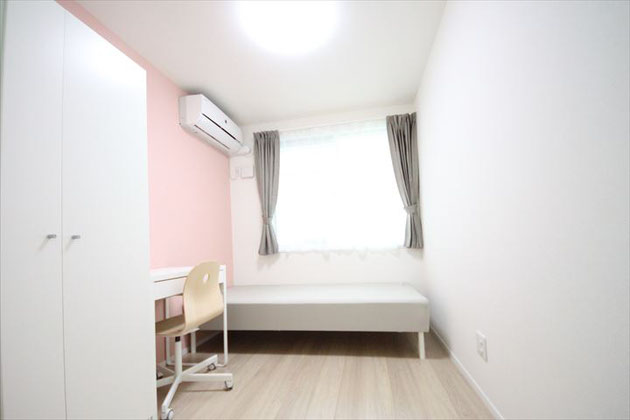 ¥30,000- | 洋室。採光良好。 附有床。桌子。椅子。空調。窗簾。衣櫥。附有洗臉化妝台。 |