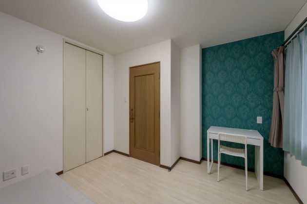 ¥30,000- | 洋室。日当り良好。 ベッド、クローゼット、机、椅子、 エアコン、カーテン付。 |