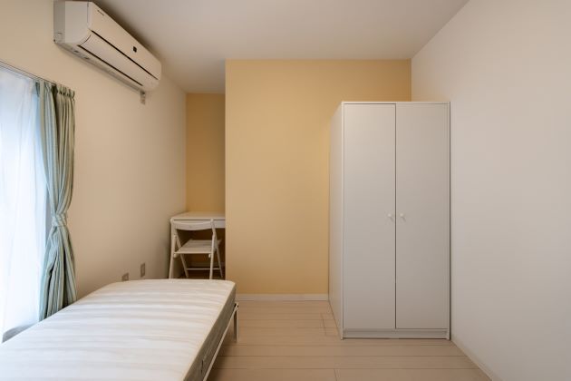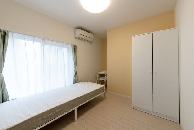 ¥30,000- | 洋室。日当り良好。 ベッド、デスク、椅子、 クローゼット、 エアコン、カーテン付き |