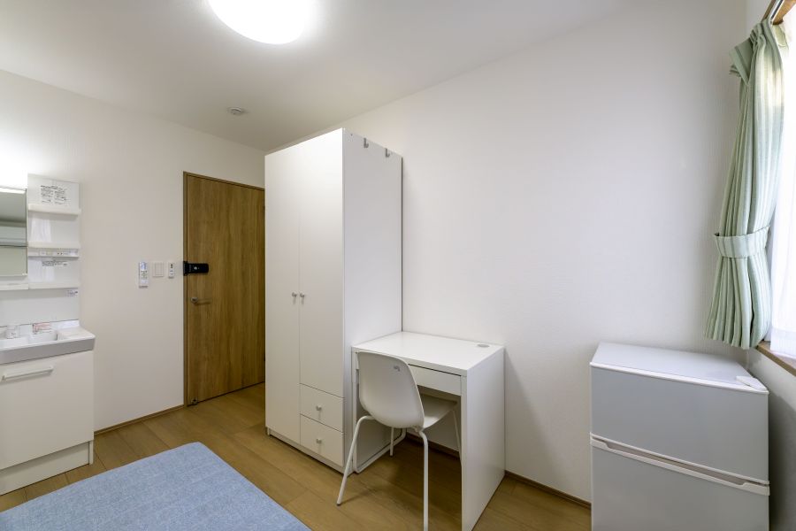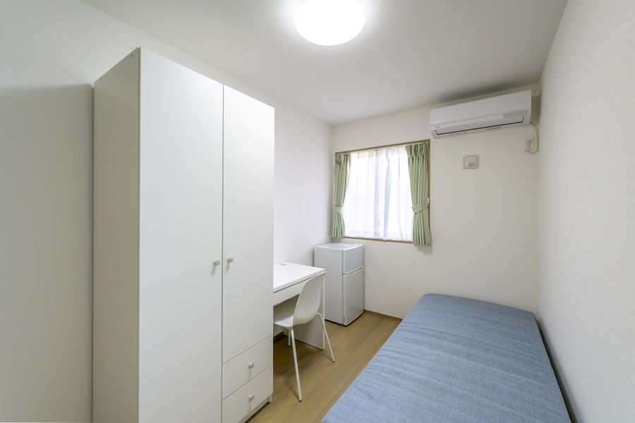 ¥30,000- | 洋室。日当り良好。 ベッド、冷蔵庫、エアコン、 机、椅子、クローゼット 洗面台、カーテン付き |