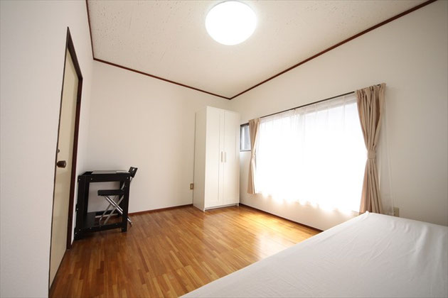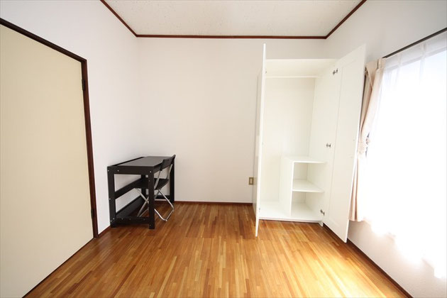 ¥30,000- | 洋室角部屋。日当り良好。 ベッド、デスク、椅子、 エアコン、カーテン、 クローゼット付き。 |