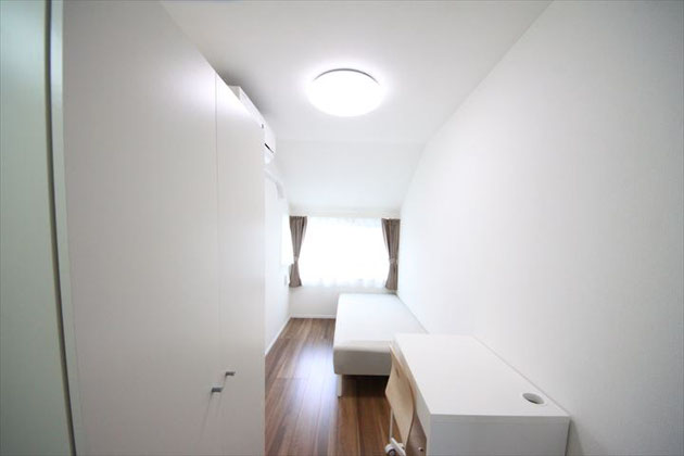 ¥30,000- | 洋室。日当り良好。 洗面台、ベッド、 クローゼット、机、椅子、 エアコン、カーテン付。 |