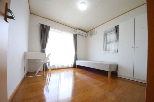 ¥30,000- | 洋室。日当り良好。 バルコニー、ベッド、 クローゼット、机、椅子、 エアコン、カーテン付。 |