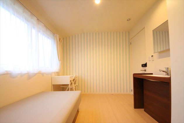 All rooms here have washing stand, you could use your own washing stand for making up and washing your face. Of course that you have your own closet in your room. The name of this house called Yui(結), the landlord wishes that destiny could make everybody have same