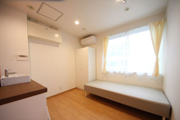 個室は全室洗面台付き。顔を洗ったりメイクを落としたり何かと便利です。また収納もしっかり全室クローゼット付き南向きの明るい部屋が中心です。