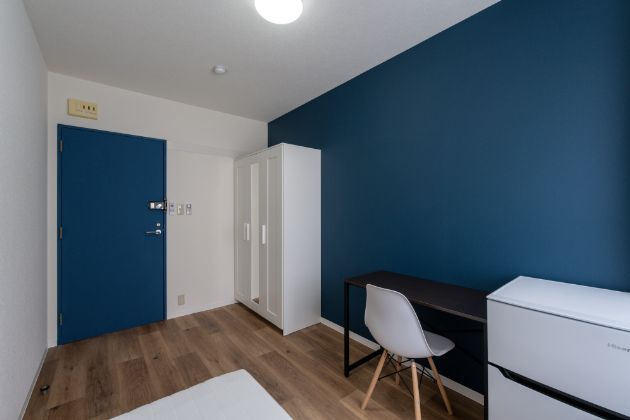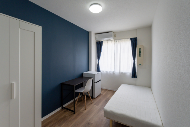 ¥30,000- | 洋室。日当り良好。ベッド、 クローゼット、机、椅子、 エアコン、冷蔵庫, カーテン付き。 |