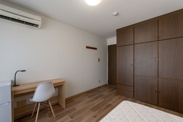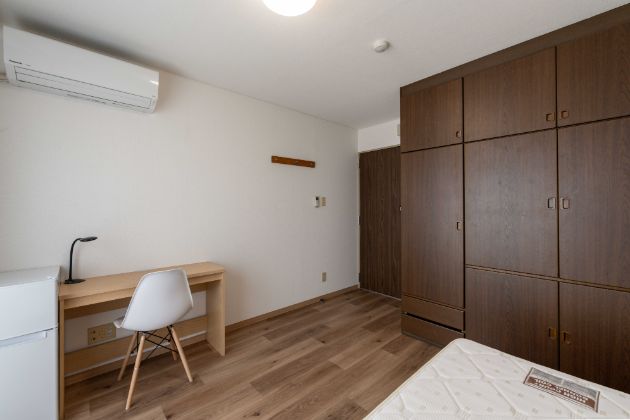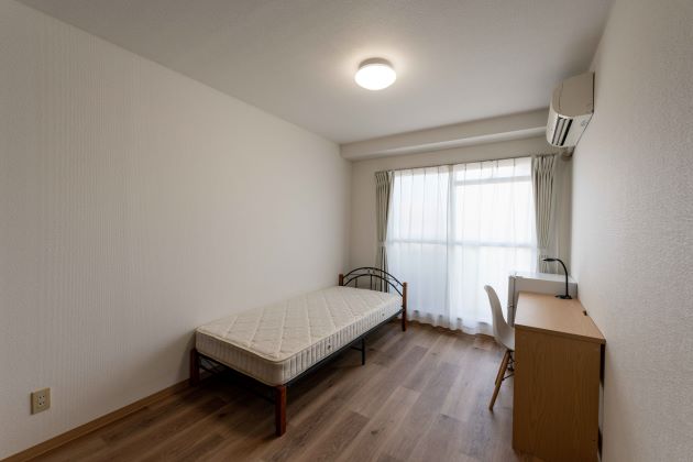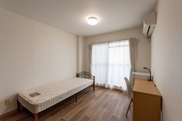 ¥30,000- | 洋室。日当り良好。ベッド、 クローゼット、机、椅子、 エアコン、冷蔵庫,カーテン付き。 |