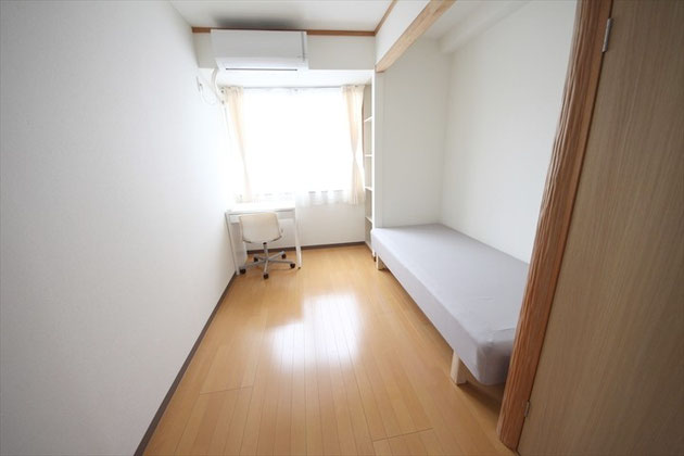 ¥30,000- | 洋室。日当り良好。 ベッド、デスク、椅子、 エアコン、カーテン、 クローゼット付き。 |