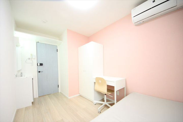 個室は全室洗面台付き。顔を洗ったりメイクを落としたり何かと便利です。また収納もしっかり全室クローゼット付き。
